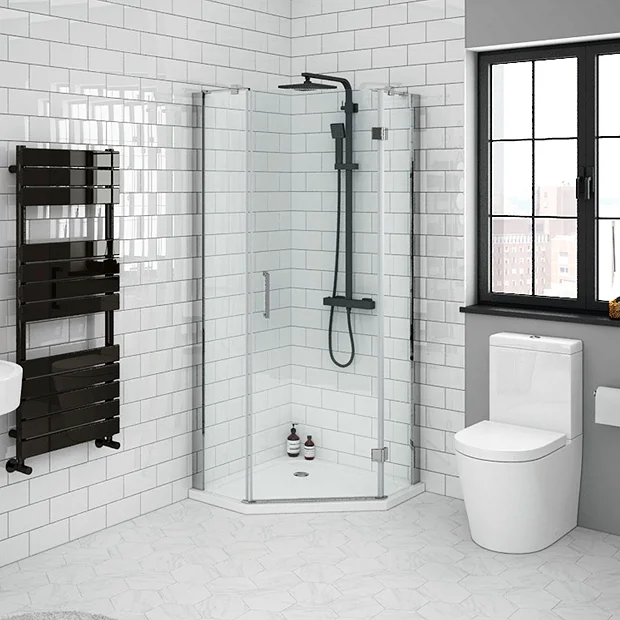 Apollo Pentangle Frameless Enclosure – 800x800mm Inc. Tray + Waste – R/H Opening