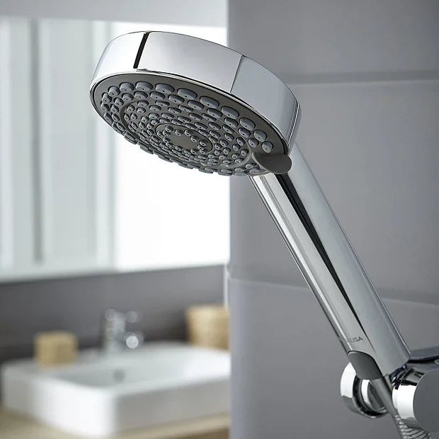 - Adjustable height, Harmony Electric shower head with 5 impressive spray patterns, rub clean nozzles and anti-twist hose connection