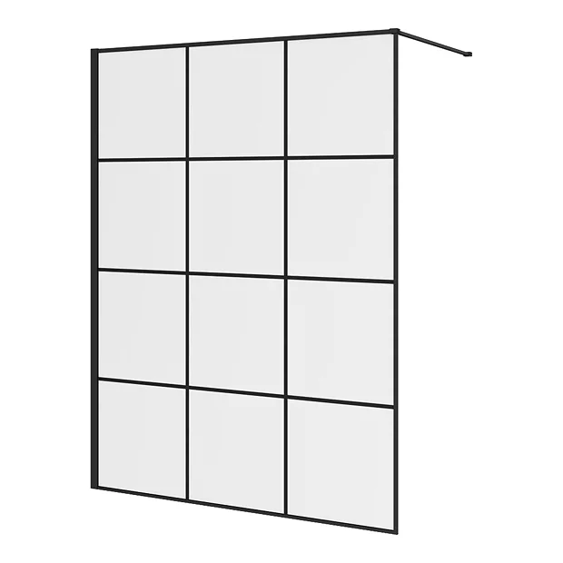 (1) W1400 x H1950 Matt Black Grid 8mm Wetroom Screen inc. Matt Black ArmÂ