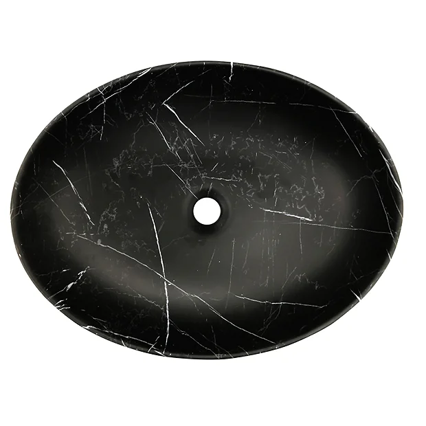 Arezzo 455 x 325mm Matt Black Marble Effect Curved Oval Ceramic Counter Top Basin – 0 Tap Hole