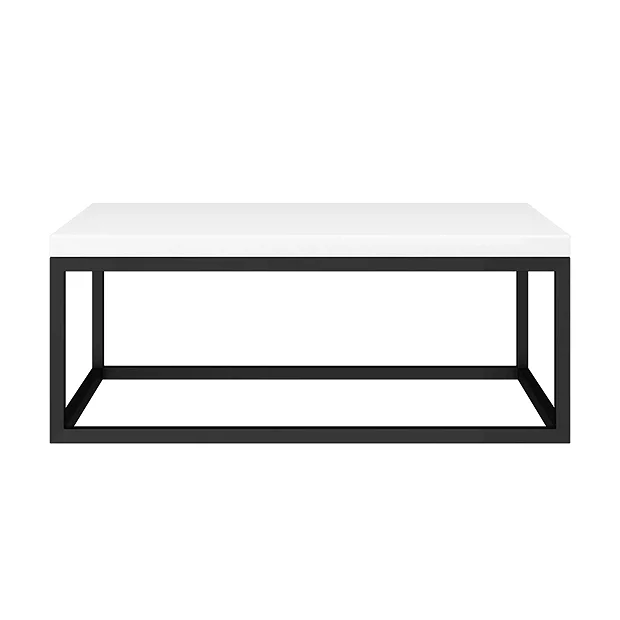 The smart space-saving Arezzo 700mm wide stone resin gloss white wall hung counter top basin shelf features minimalist clean lines. Supplied with a supporting matt black steel towel rail frame, perfect for creating a stunning, fashionable and chic bathroom interior. The practical square frame provides a space to hang your towel, keeping it close to hand. Complete the look with one of our stylish counter top basins, matt black basin taps and exposed bottle traps (not included).