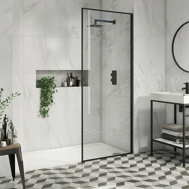 Arezzo W800 x H1950mm Square Matt Black Framed 8mm Wetroom Screen