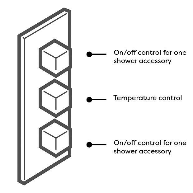 - Offers thermostatic showering via three easy-to-operate controls.Â