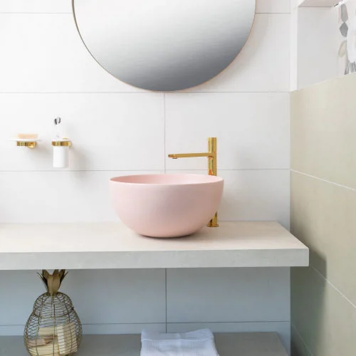 BagnoDesign Matt Pink Koy 400mm Round Countertop Basin – BDS-KOY-702-MPK
