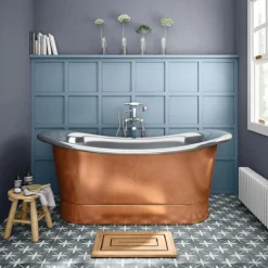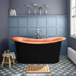 Trafalgar Matt Black 1700 X 710mm Double Ended Slipper Roll Top Bath Tub (Copper Inside)