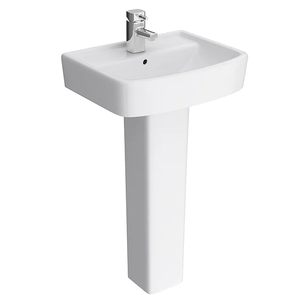 With its sleek clean lines and contemporary curves, this Brooklyn pedestal sink will bring a refined look to modern spaces. This particular bathroom sink is 520mm in width. Made from glossy and durable white china, it features one tap hole and is designed for use with a mono basin mixer tap.