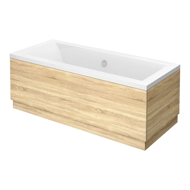 The Brooklyn Natural Oak double ended bath tub, features a textured wood effect finish which is extremely hard wearing and easy to maintain and has colour matched edging strips for providing a flawless look to the exterior. The colour will not fade over time and is water resistant – making it ideal for use in the bathroom. Constructed from durable and strong acrylic, this stunning gloss white bath tub is sure to stand the test of time, and is available in 3 sizes.Â