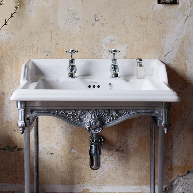 The Classic basin with beautifully designed Brushed aluminium wash stand, crafted and manufactured by the industry leading traditional brand Burlington.