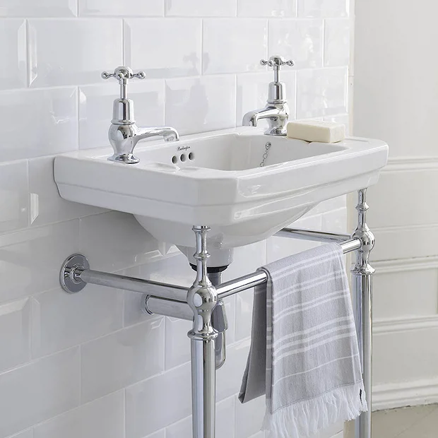 The Victorian Basin is beautifully designed, crafted and manufactured by the industry leading traditional brand Burlington. This Basin is available in a choice of 1, 2 or 3 Tap holes (1TH pictured), this option opens you up to be able to choose from the entire range of Burlington Taps. This Basin comes complete with a stunning Chrome Wash Stand.