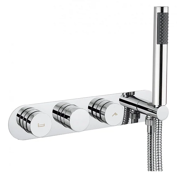 The chic looking Dial Central 2 Control Bath Valve with Single Mode Handset features a brass body which has been engineered for maximum flow rate, the valve has 11 separate flow positions for complete showering flexibility whilst the built in thermostatic valve gives precise control of the temperature.Â