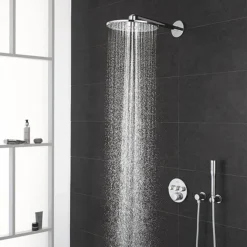 Enhance a bathroom of any size with this compact Grohe Euro Rimless Close Coupled Toilet, which projects just 670mm from the wall. Its smooth, rimless style avoids crevices where bacteria can multiply for a hygienic and easy to clean design. With a touch of its glossy chrome flush button, the Grohe toilet’s Triple Vortex Flush creates powerful, dependable suction. Its soft close lid and seat will help maintain your bathroom’s peaceful harmony.