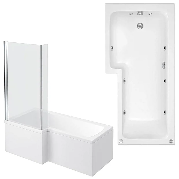 Create spa sensations in your own bathroom with the Laguna Whirlpool 8 Jet L-Shaped Shower Bath. This whirlpool spa bath features eight massage jets for the ultimate in relaxation and healing hydrotherapy. You’re able to move freely and lounge comfortably thanks to its generous 1700mm length and accommodating shape. The accompanying L shaped bath screen guards your floor against splashing and a hinge mechanism means you can access the tub easily. The bath’s white gloss finish blends well with similar fixtures and is durable – all you’ll need to worry about is lying back in the bubbles.
