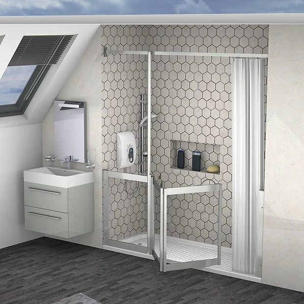 Designed for independent & assisted showering to help retain water in the shower area, the Milton Front Access Half Height Bi-Fold Door Hinged from Fixed Panel is ideal for use on shower trays or in wetrooms providing ease of use & installation. The doors are glazed with PET environmentally friendly impact resistant glazing as standard. The flip over latch will prevent door movement should a carer lean against them & will provide a more rigid enclosure while the rise & fall hinges lift the door by at least 10mm & are easy to operate & highly manoeuvrable. The Easy to grip ‘D’ handles supplied for users with limited strength. Supplied as standard with a 2000mm drop antibacterial protected shower curtain and rail.