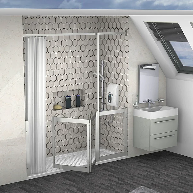 Designed for independent & assisted showering to help retain water in the shower area, the Milton Front Access Half Height Bi-Fold Door Hinged from Fixed Panel is ideal for use on shower trays or in wetrooms providing ease of use & installation. The doors are glazed with PET environmentally friendly impact resistant glazing as standard. The flip over latch will prevent door movement should a carer lean against them & will provide a more rigid enclosure while the rise & fall hinges lift the door by at least 10mm & are easy to operate & highly manoeuvrable. The Easy to grip ‘D’ handles supplied for users with limited strength. Supplied as standard with a 2000mm drop antibacterial protected shower curtain and rail.