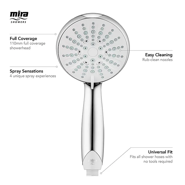 Bursting with performance. The Mira Event XS Dual Outlet Thermostatic Power Shower brings safe, powerful showering with the added benefit of a dual shower. The dual outlet shower diverts easily between the 200mm overhead deluge and seperate 90mm handshower. Suited to homes with a low pressure water system and plentiful supply of hot water.