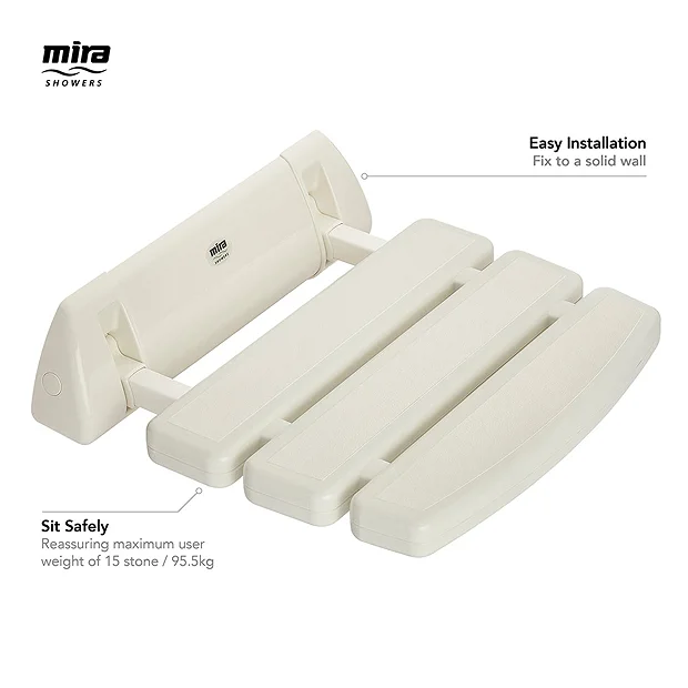 For use in or out of the showering area, the Mira Shower Seat is the perfect addition to any bathroom. Easy to fit, the seat simply folds away when not in use.Â