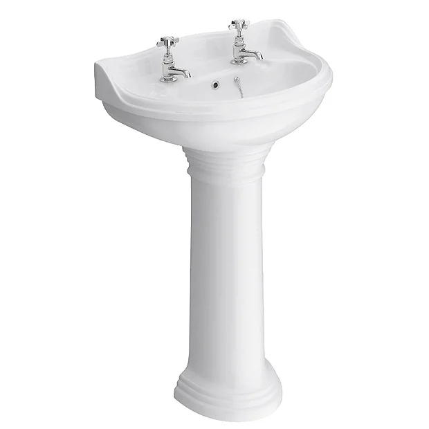 Monaco Traditional Basin with Pedestal (2 Tap Hole – Various Sizes)