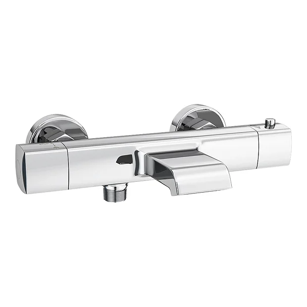 The modern soft curved Montreal bath shower mixer valve with modern integrated wide bath spout is designed to be wall mounted, the mixer is thermostatic allowing the user to control the temperature from the bar valve. The valve is complete with a diverter to control function between tap and shower. The outlet connection is located on the bottom base of the valve and is perfect for use with any of our shower kits (sold separately).