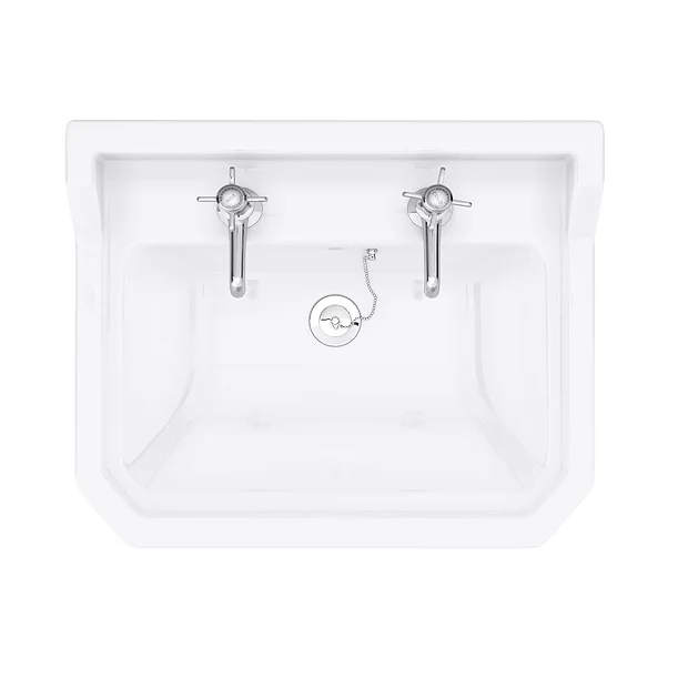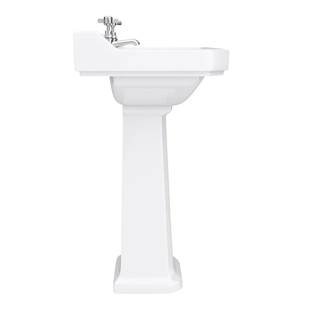 Inspired by Victorian and Edwardian design, the Nuie Carlton Traditional Basin and Pedestal will bring a distinctly period style to your bathroom. It’s crafted with classic bevelled edging and an outer rim design that perfectly frames traditional taps while providing ample space for your soaps and toothbrushes, too. This two-tap bathroom sink is made from hardwearing vitreous china and boasts a smooth, lustrous surface complete with a durable gloss white finish that resists stains.
