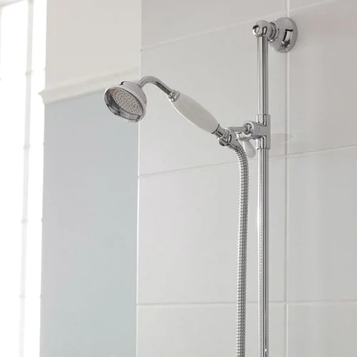 Create a stunning traditional aesthetic in your bathroom and complete it with an invigorating shower experience with the Nuie traditional shower. It includes a 4″ rose shower head and rigid riser handheld shower, giving you a unique wash every time. It offers the perfect balance between beautiful design and incredible build, made with a brass interior for a strong and durable body, and finished in chrome for a shine like no other.Â