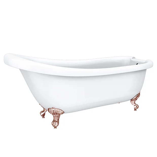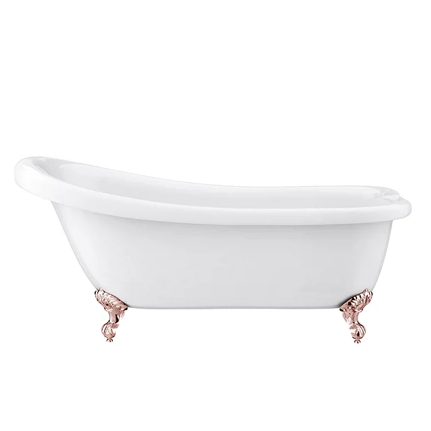 A stunning 1710mm long slipper bath with traditional rose gold feet, enjoy the feeling of luxury with this classical free standing bath.Â