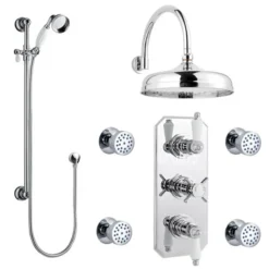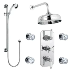 Traditional Triple Concealed Shower Valve With Diverter, 8″ Fixed Shower Head, 4 Body Jets & Slider