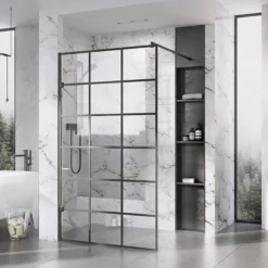 Roman Liberty Black Grid Wetroom Screen + Wall Arm Support – Various Sizes (2000mm High)