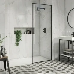 Arezzo 1600 X 800 Wet Room (incl. 900mm Square Matt Black Framed Screen + White Tray)