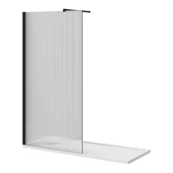 Arezzo 1600 X 800 Fluted Glass Matt Black Walk In Enclosure (inc. Main Screen, Side Panel + Tray)