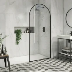 Arezzo 900 X 1950 Arched Matt Black Framed 8mm Wetroom Screen