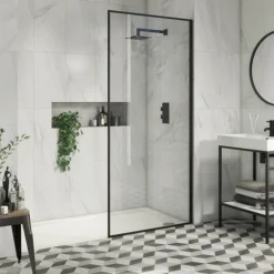 Arezzo 900 X 1950 Square Matt Black Framed 8mm Wetroom Screen