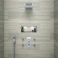 Traditional Triple Concealed Shower Valve With Diverter, 8″ Fixed Shower Head, 4 Body Jets & Slider