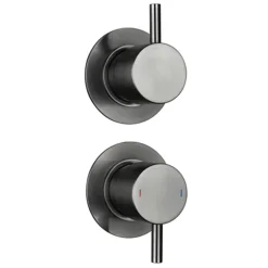 Arezzo Brushed Gunmetal Grey Concealed Individual Stop Tap + Thermostatic Control Shower Valve