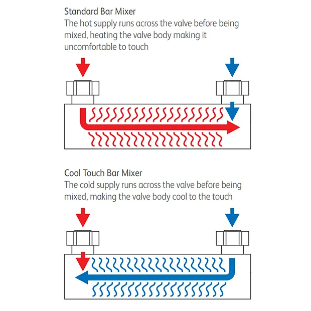 A stylish ‘Cool Touch’ thermostatic bar valve, designed to provide safe showering for all the family. This stunning minimalist chrome bar valve has separate controls for temperature and flow. Cold water is circulated around the bar valve itself so that it is cool to the touch. Supplied with the Trafalgar Traditional Slider Rail Kit. Slider rail kits provide a more flexible showering solution for all users large or small. The kit consists of a classic slide rail, 1.5 hose and shower handset.