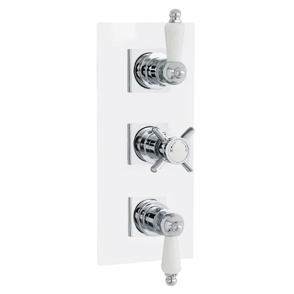 Traditional Triple Concealed Thermostatic Shower Valve with Diverter & Rectangular Plate
