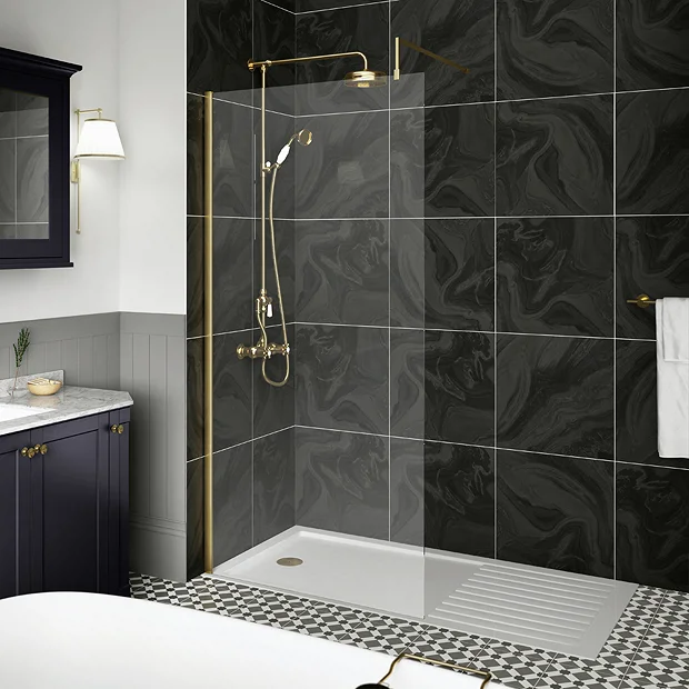 The Venice Wetroom Screen features a stunning Brushed Brass profile that will look and feel great in your bathroom. Made from 8mm toughened safety glass for added piece of mind.