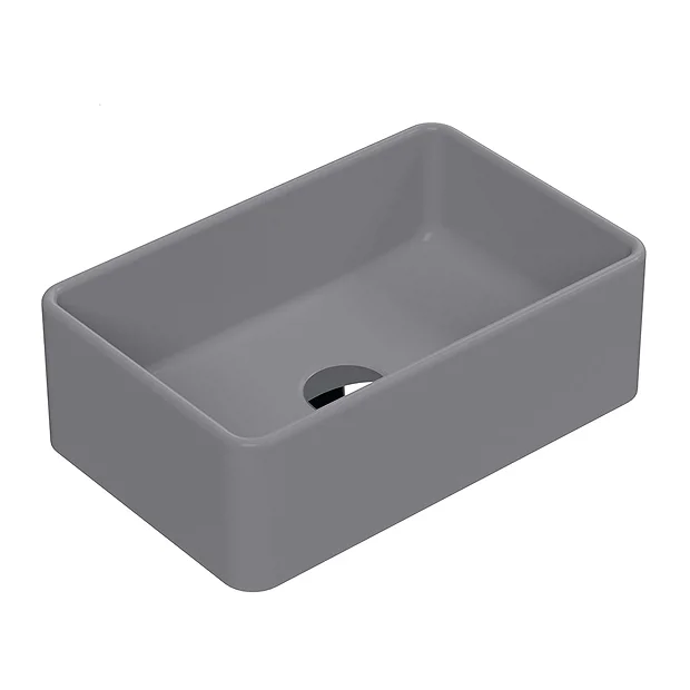 The Venice rectangular counter top basin features soft square lines and a modern minimalist design. Designed to be mounted to a worktop console or vanity unit, the basin is the perfect complement for a high rise tap or wall mounted mixer. Manufactured from vitreous china with a quality matt grey finish.