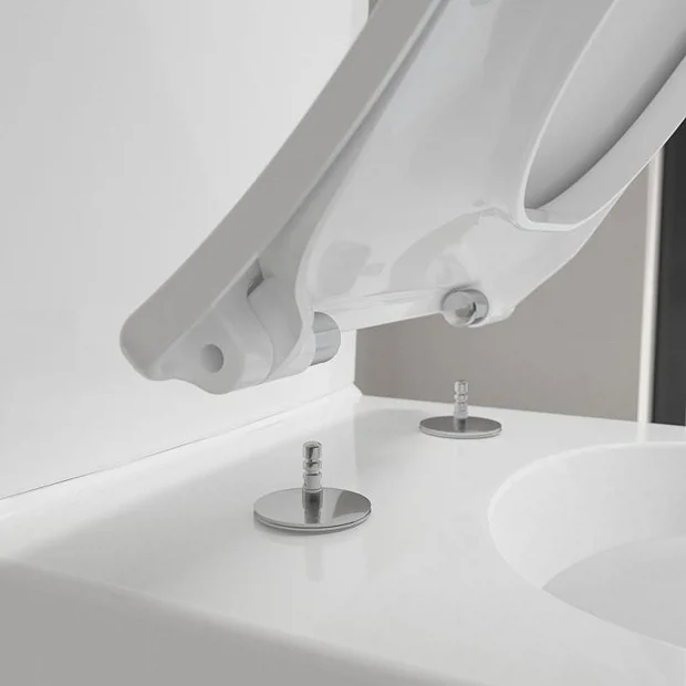 The Venticello collection from Villeroy and Boch combines form and function in impressive style. This close coupled toilet modern back-to-wall design keeps pipework neatly hidden and a dual flush cistern giving a 4.5 or 3 litre flush. The toilet features a rimless pan for top cleanliness and perfect design while the sanitary ceramic is especially long-lasting and easy to clean. Includes a soft close seat with quick release.