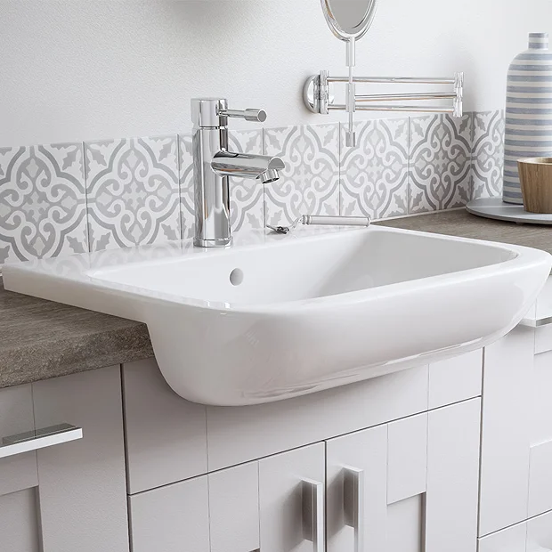 This washbasin is to be semi recessed into a counter top and is available in a choice of 1 or 2 tap holes.